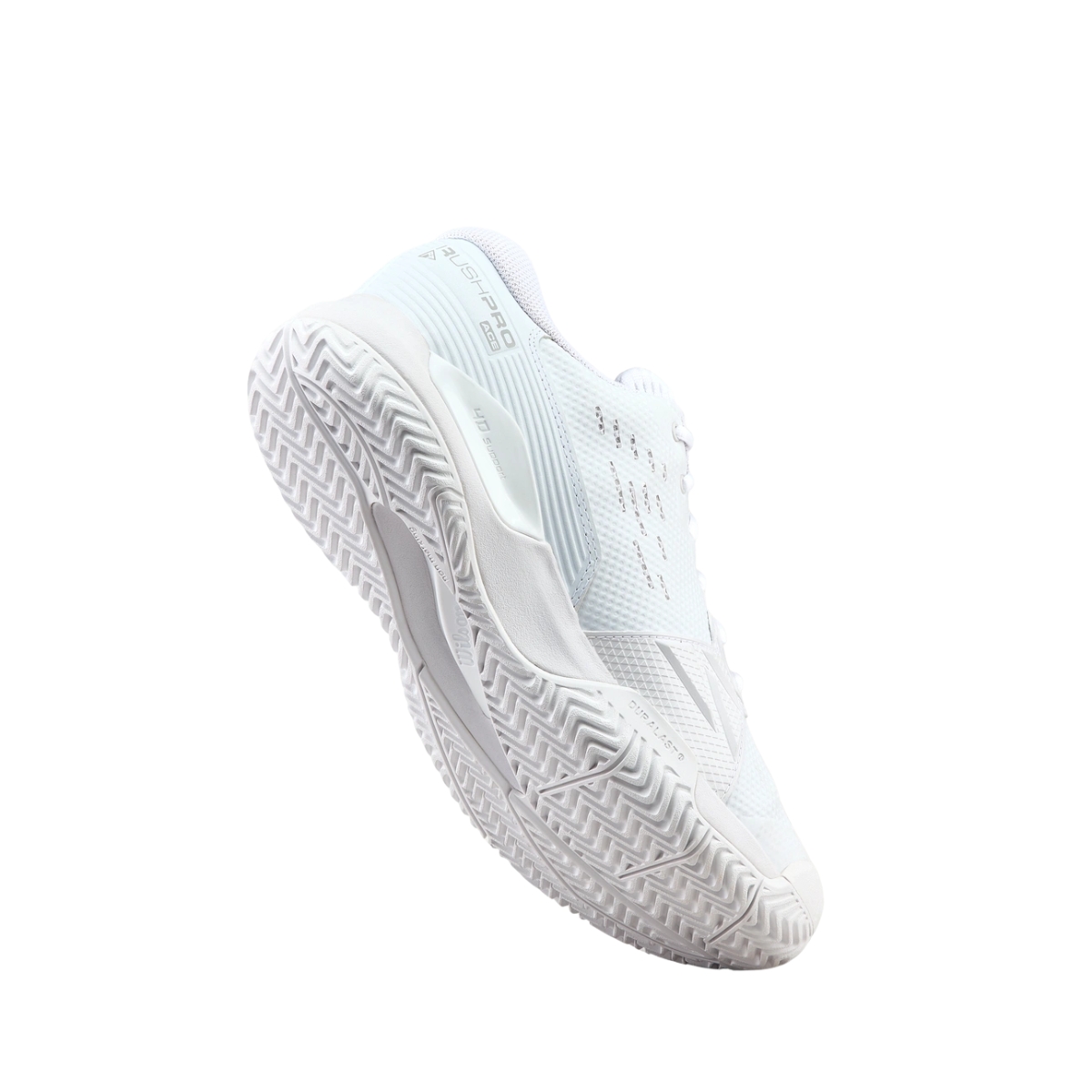 Den mest generösa passformen i den populära Rush Pro-linjen, Rush Pro Ace Clay, får höga betyg för tennisspelare med en stark preferens för komfort på banan. Framhävd av sin bredare tåbox för att rymma bredare fötter, hjälper denna sko också till att stabilisera foten genom sitt 4D-stödchassi: ett symmetriskt häl-tå-chassi som begränsar supination för att hjälpa till att kontrollera pivotrörelser. Rush Pro Ace har ett lager med Sensifeel på ovandelen för extra andningsförmåga och ger en tilltalande blandning av komfort, stabilitet och estetik för suveränt självförtroende med varje steg.
