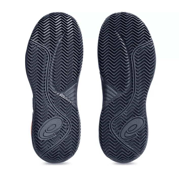 Patterned sole optimized for maximum traction and stability on clay surfaces and courts with sand.
