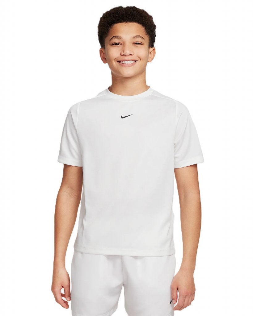Nike Dri-FIT technology wicks sweat away from the skin and promotes rapid evaporation to keep you dry and comfortable. Angled raglan sleeves allow natural freedom of movement and enhanced comfort. Material: 100% polyester Machine wash: 40 degrees synthetic