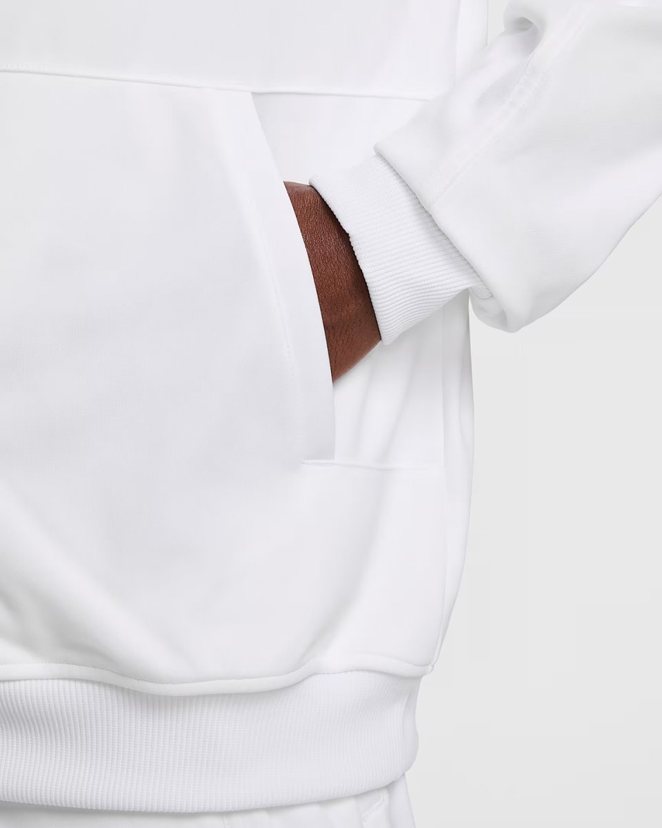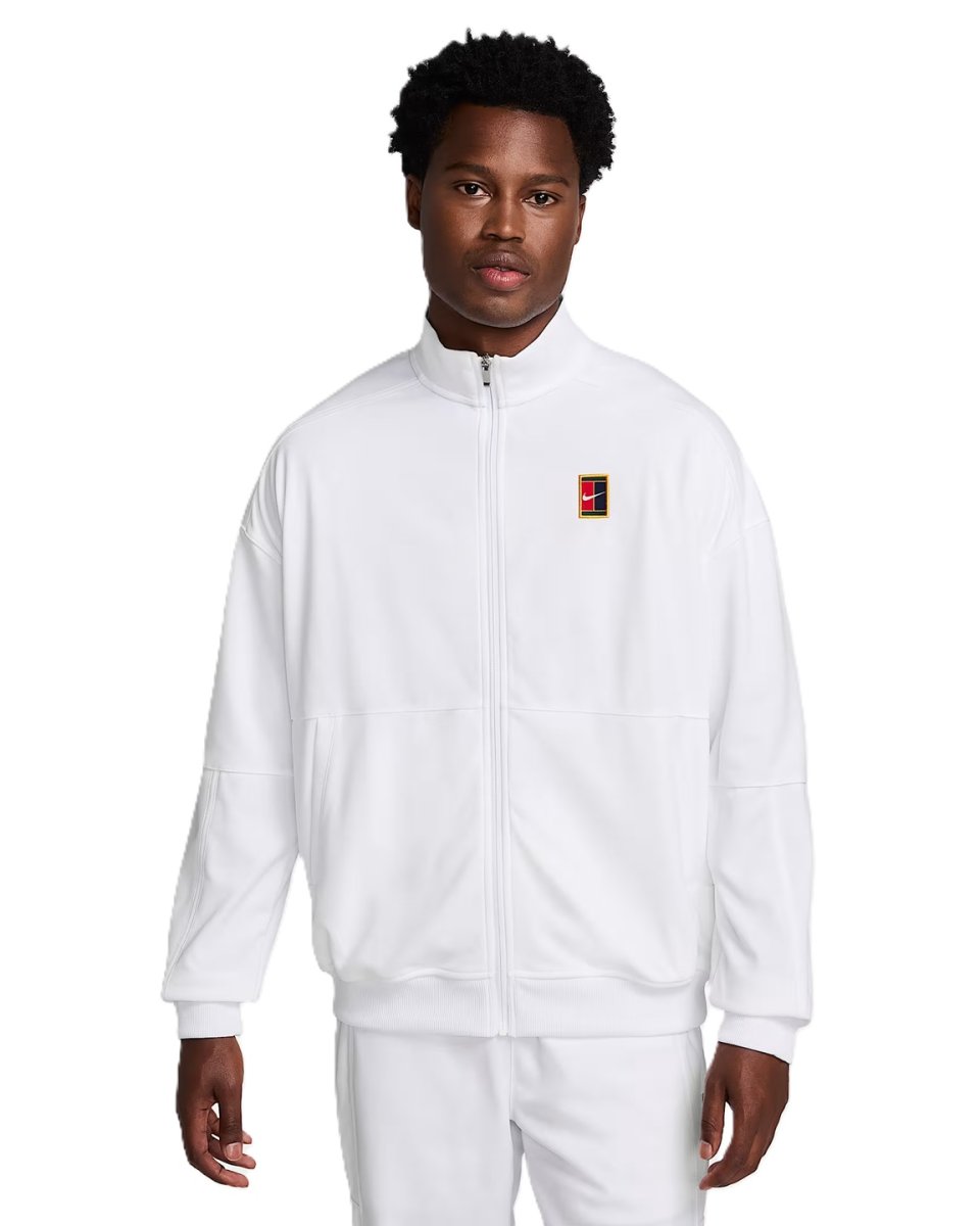 Nike Court Heritage Jacket white - for men. The NikeCourt Jacket takes its cues from the layout of a tennis court, allowing you to represent your favorite sport long after the match is over. Its smooth knit fabric and ribbed details create the look and feel of a classic tracksuit jacket. This product is made from 100% recycled polyester fibers.