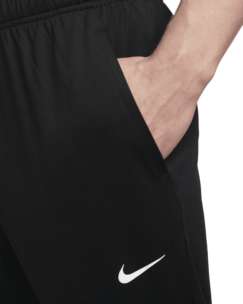 Standard fit with tapered legs. Nike Dri-FIT technology wicks sweat away from your skin and speeds up evaporation, keeping you comfortably dry. Side pockets for easy access to essentials. Elastic waistband with drawstring for a secure fit. Knit material that is soft, lightweight, and breathable. 100% polyester Machine wash Color: Black