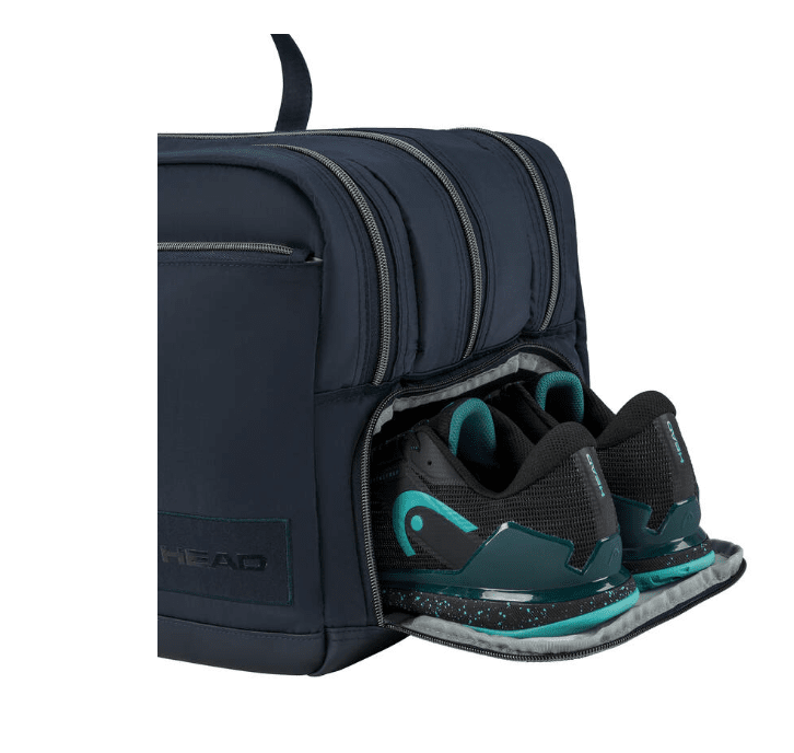 Crafted from a fabric that looks like materials typically used in fashion bags – while also feeling good to the touch - the new PRO DUFFLE BAG L NV offers sleek, navy style for on and off the court. Embossed HEAD logos on the straps add a premium touch to your ultimate sport and travel companion, which is part of a new lifestyle and fashion-influenced collection of versatile bags from HEAD. Sophisticated style is mixed with modern functionality – including multiple compartments to easily carry and protect your racquets, laptop and other personal items – as well as the stability and lightweight durability that make this bag suitable for everyday use.