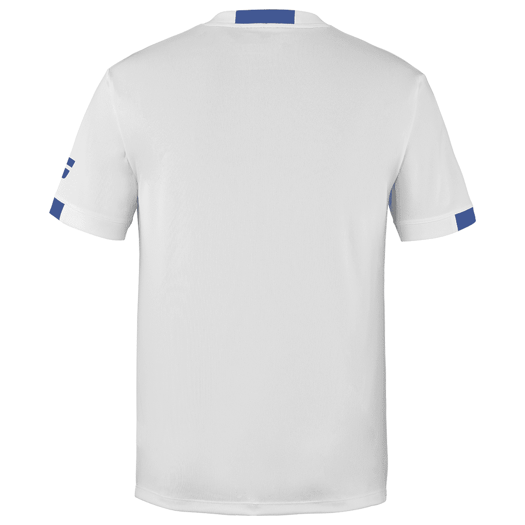 Stilren design och skönt material. Vit rundhalsad T-shirt i funktionsmaterial som torkar snabbt. Rör dig lätt och snabbt över banan med Babolats tenniskläder.