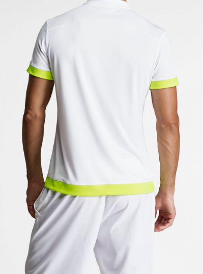 Spela tennis i tenniskläder som bär Sveriges tennisikons namn. Björn Borgs tenniskollektion är ursnygg och håller en klassisk och stilig design. Här kan du köpa en polo  i funktionsmaterial. Polon har har limegröna detaljer på ärmen och nderdelen utav tröjan. Liten stilig krage och två knappar i halsen förhöjer den fina designen ytterligare ett steg.