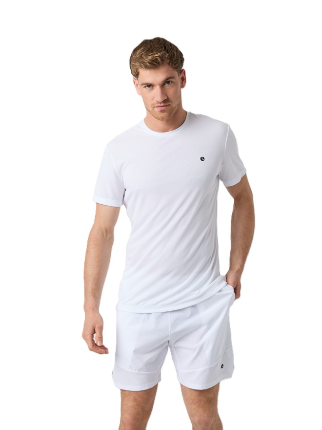 Den tunna, andningsbara tyget gör att du kan röra dig fritt utan begränsningar, medan den mjuka känslan mot huden gör att du vill bära den hela dagen. Med stilrena detaljer och subtil logga ger T-shirten en diskret men självsäker look.