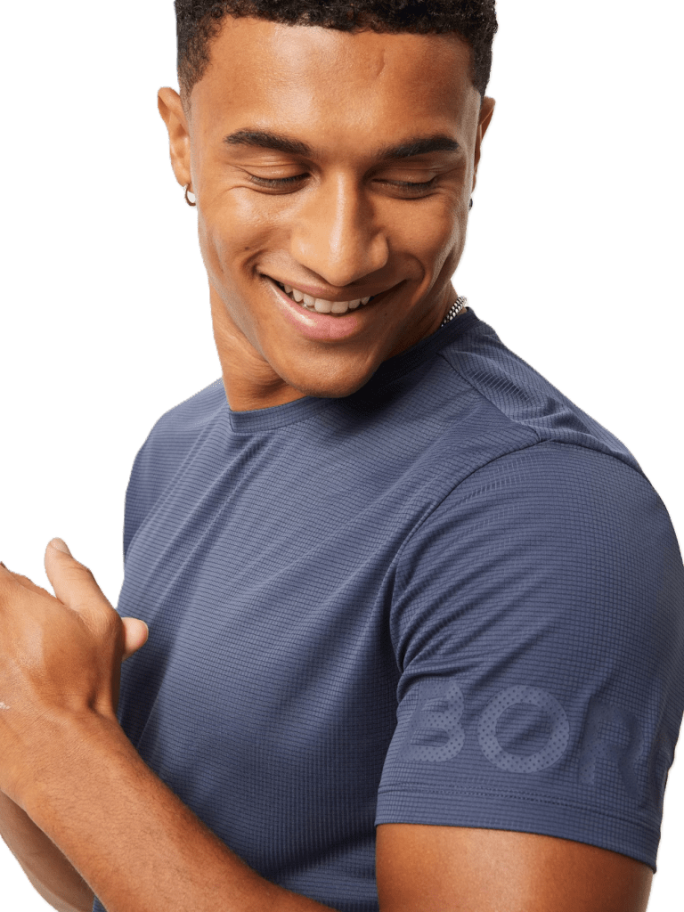 Borg Light T-shirt: Perfekt passform, ultimat komfort. Med en längre midja för extra täckning under rörelser över huvudet. Den rundade halsen och det stiliga Borg-trycket på ärmen lägger till en touch av elegans.